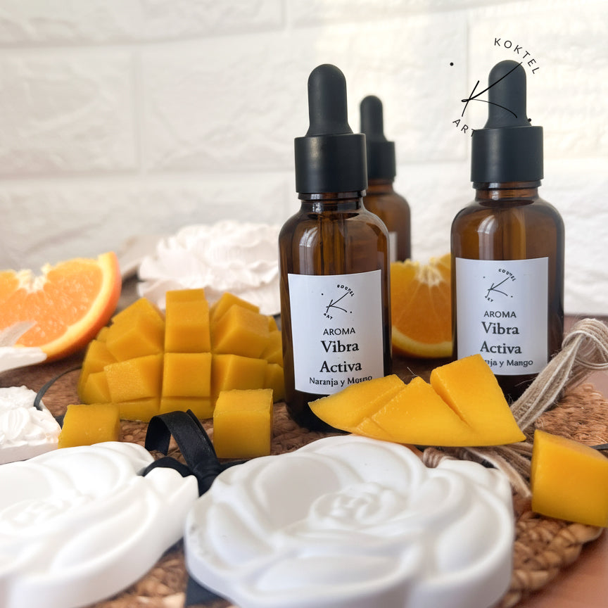Aplica unas gotas sobre tus diseños y deja que el aroma se libere suavemente. Llena tu hogar con una fragancia frutal intensa que combina notas de mango y naranja, llenando el ambiente de energía y buen ánimo.