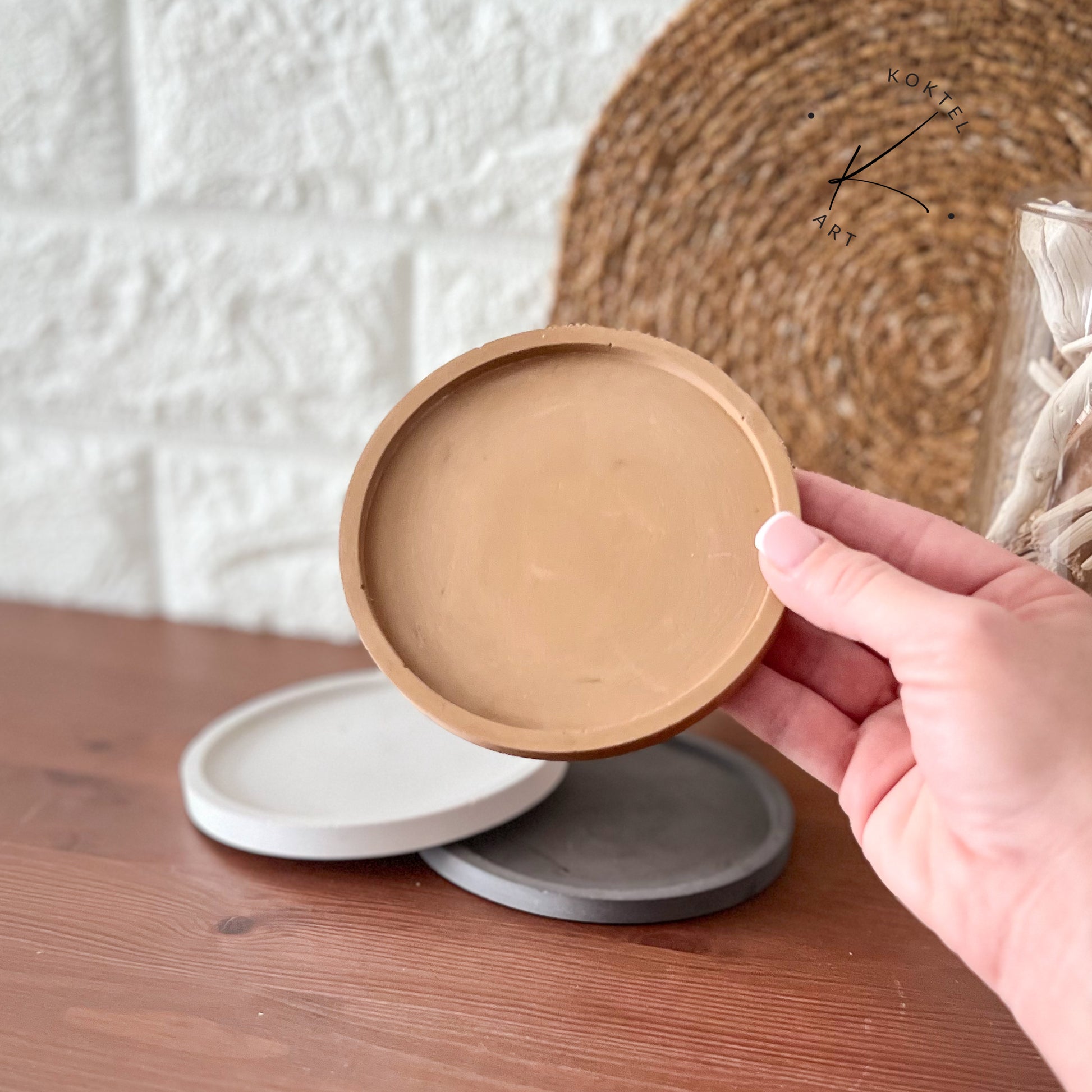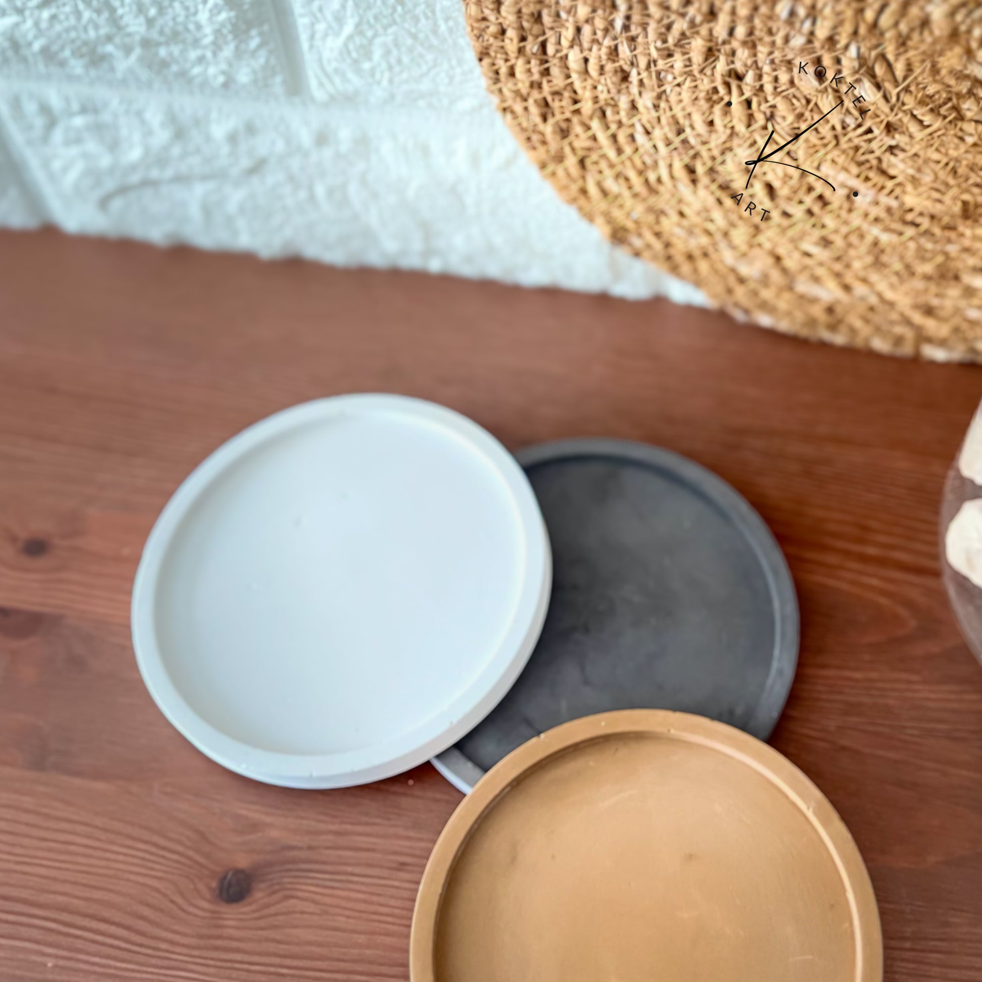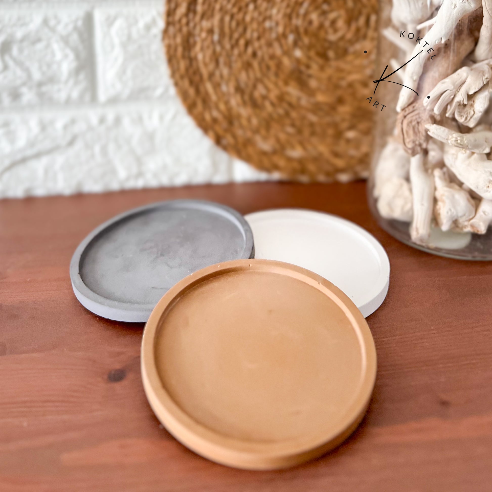 Decora tus espacios con nuestra Bandeja redonda, de diseño simple y funcional, hecha a mano con resina ecológica y disponible en tres colores para adaptarse a tu estilo y a cualquier rincón del hogar.