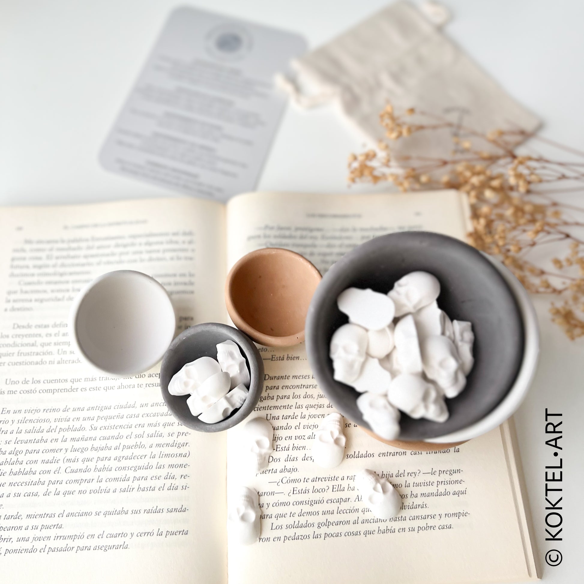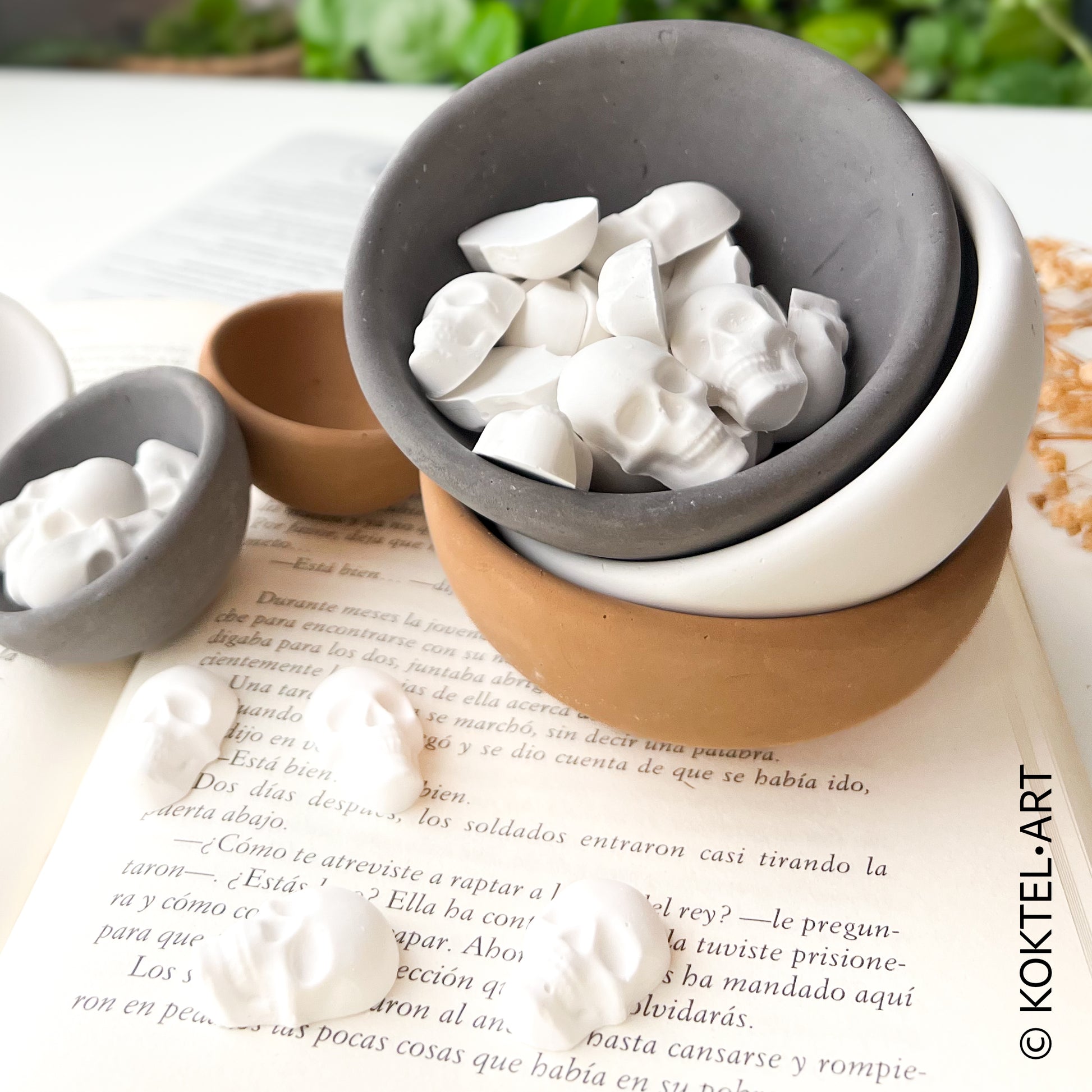 Grande: incluye 20 calaveras, cuenco de 9 cm de diámetro × 5 cm de alto