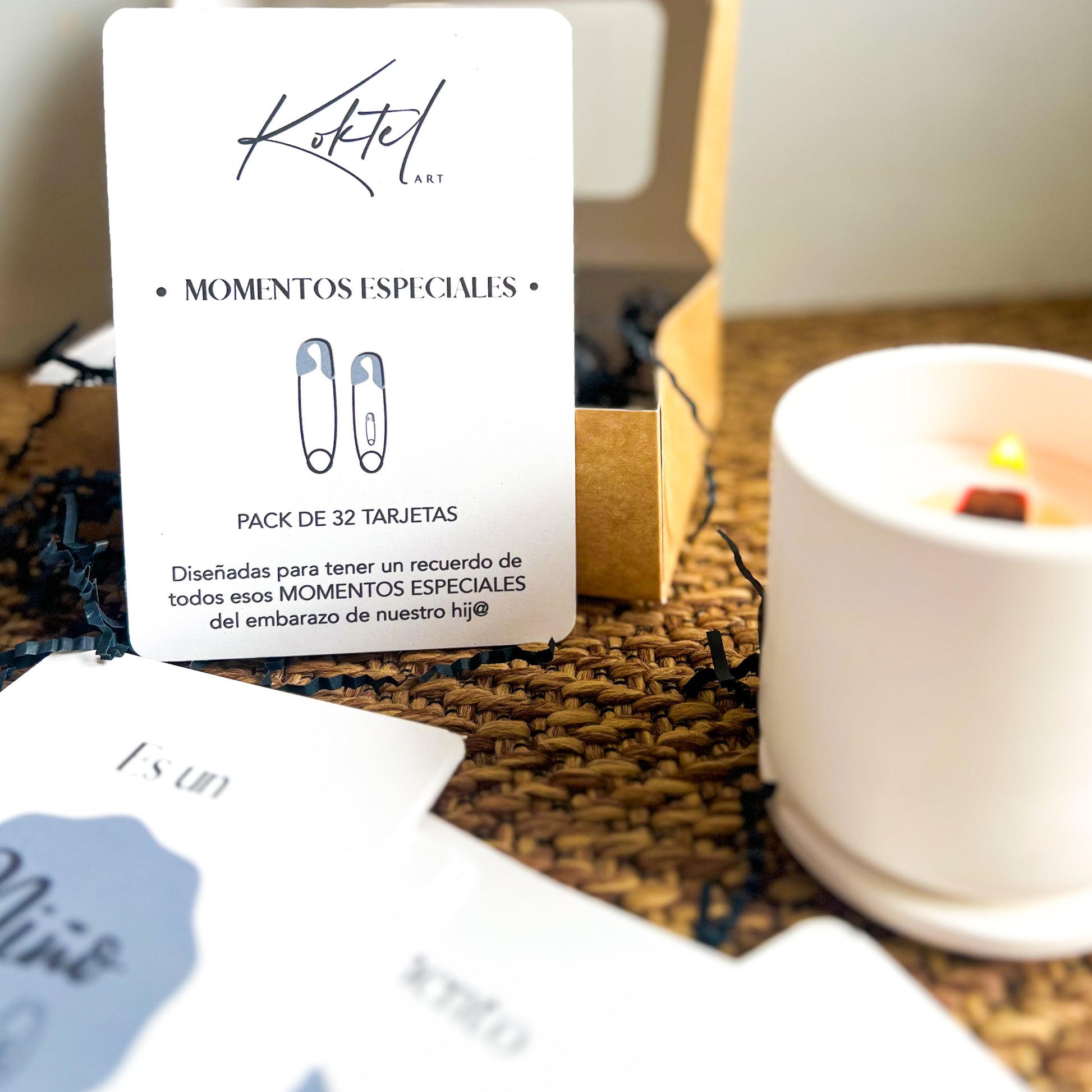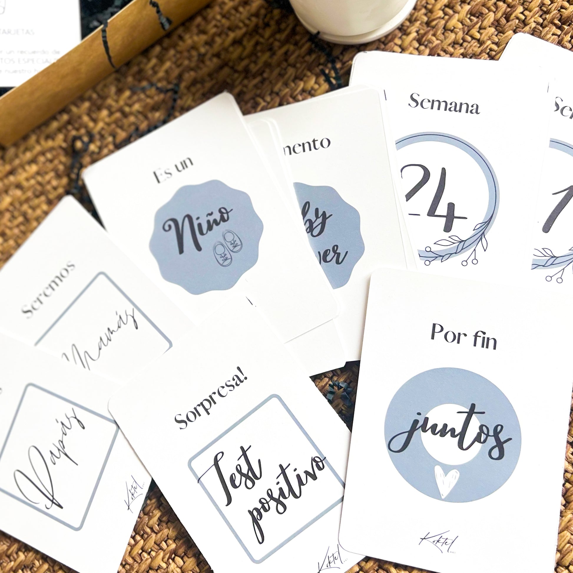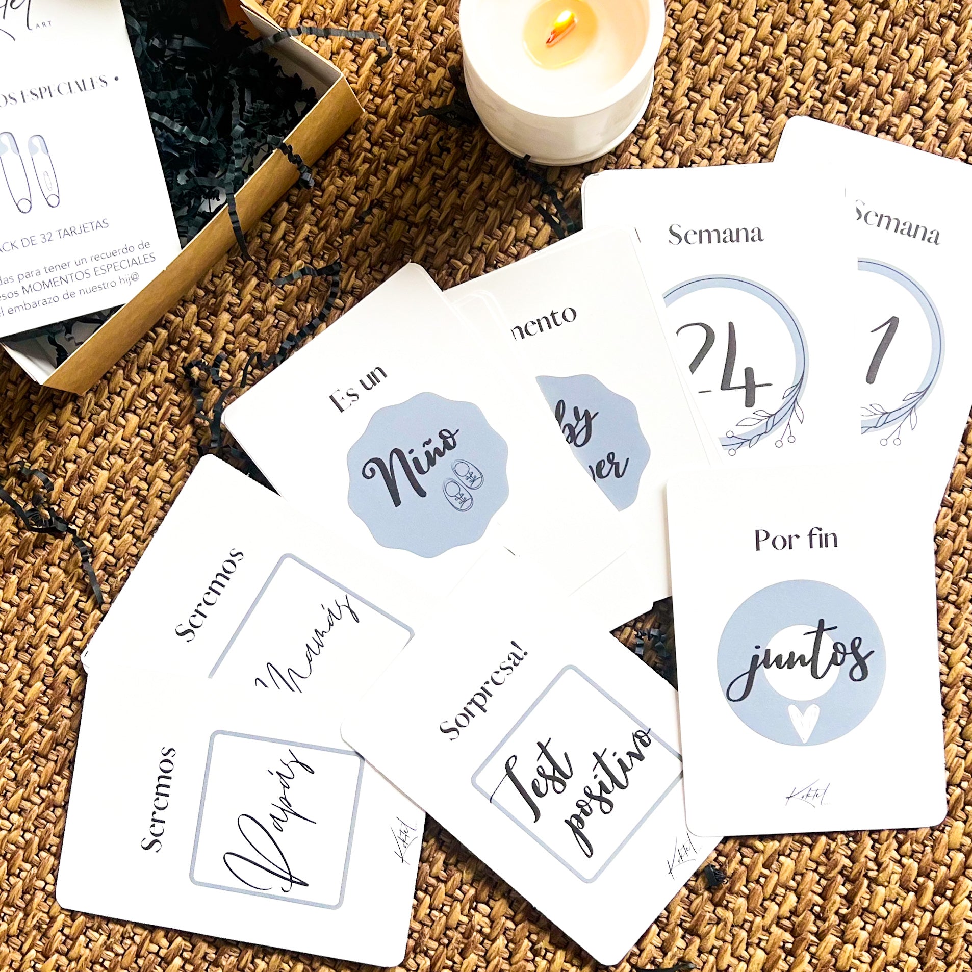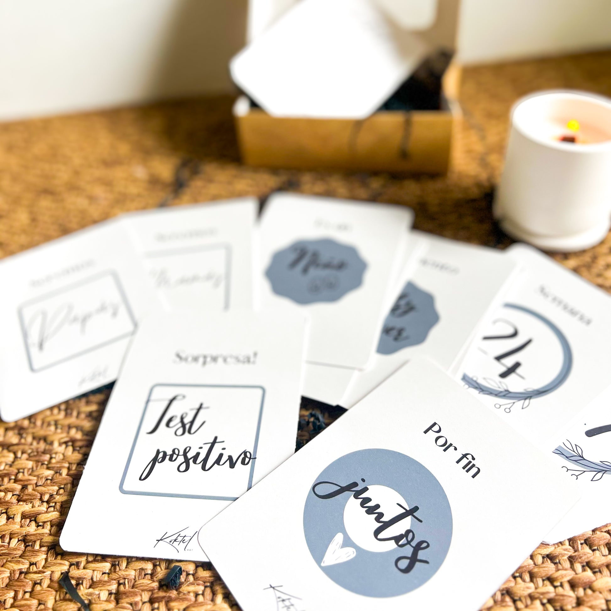 Cada tarjeta te permite registrar el momento exacto de cada fotografía, para que en el futuro puedas recordar con detalle y emoción cómo fue cada etapa de tu embarazo. Un tesoro que captura momentos como: